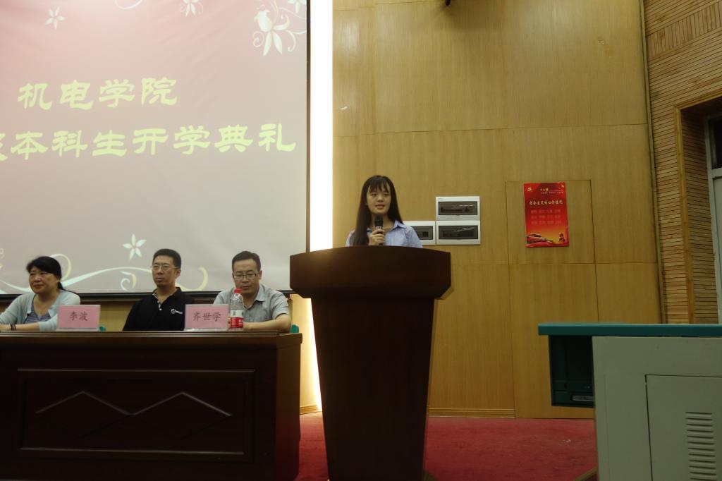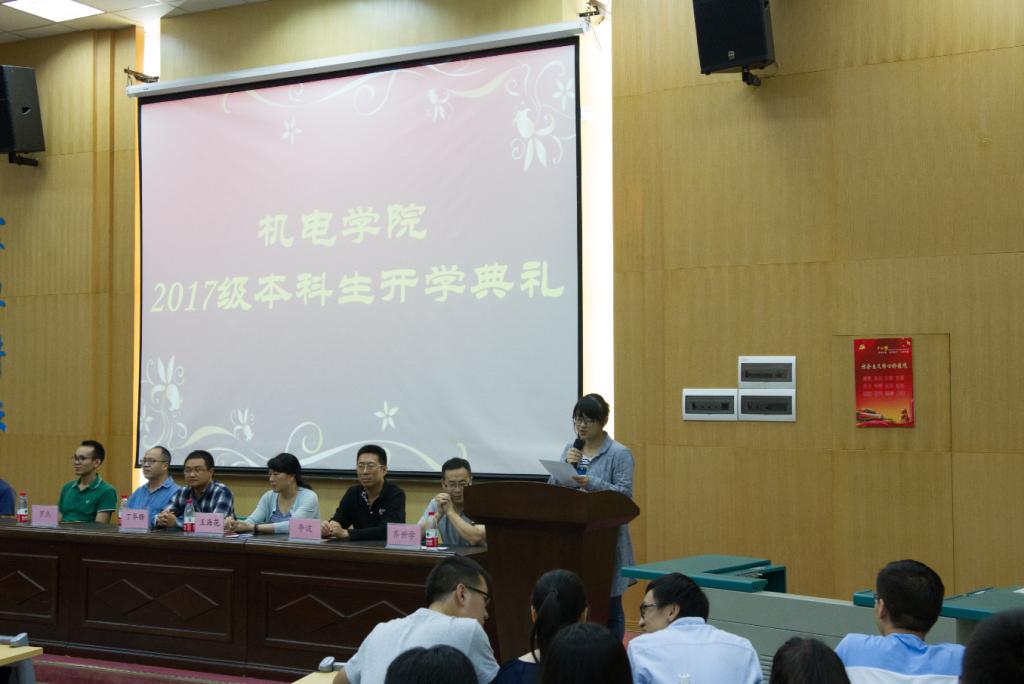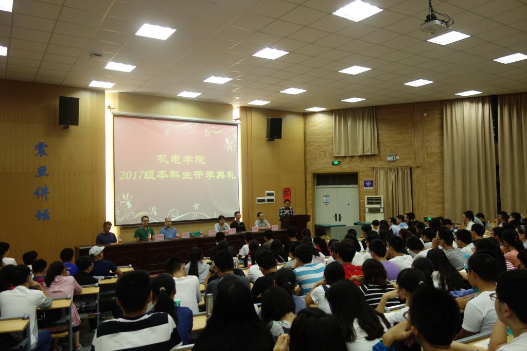 9月6日晚,机电学院2017级本科生开学典礼在教三楼109举行。院党委书记王海花、院长丁华锋、副院长李波、黄田野、罗杰、院党委副书记齐世学、教师代表郝国成出席典礼。